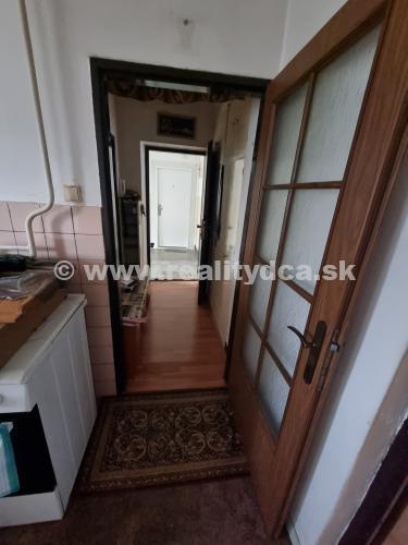 Predáme 2-izbový byt v Dubnici nad Váhom, o celkovej výmere 49 m2 plus balkón a 3 veľké pivnici a záhradka za bytovkou , ktorá je v prenájme od mesta. Byt má vymenené okná , murované jadro, nové bezpečnostné dvere, inak je v pôvodnom stave pripravený na rekonštrukciu. Dispozičné riešenie: vstupná chodba, kúpelňa s WC s kotlom na vlastné vykurovanie, veľká kuchyňa, obývacia izba s balkónom, spálňa. Orientácia kuchyňa S a izby na JZ. Bytovka má vymenené pivničné okná vchodové aj nový vchodový vrátnik so schránkami. Je schválená rekonštrukcia strechy, zateplenie a nové balkóny. Energetický certifikát nebol predložený. Kompletná občianska vybavenosť