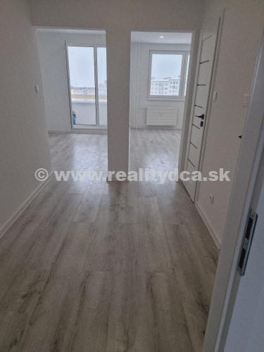 Predáme 2-izbový byt po kompletnej rekonštrukcii v Dubnici nad Váhom s lodžiovým balkónom, o celkovej výmere 52 m2, nachádzajúci sa Pod hájom - účko. Byt má vymenené okná za plastové, murované jadro s novou sanitou, nové stierky, nové rozvody elektriky, vody, nová maľovka, znížené sadrokartónové stropy s bodovými svetlami, nové interiérové a exteriérové dvere. Dispozičné riešenie: vstupná štvorcová izba, kuchyňa s východom na balkón, spálňa a obývacia izba, kúpelňa a samostatné WC, pivnica. Byt je orientovaný spálňa V, a obývacia izba s kuchyňou na JZ. Výborná lokalita, tichá, blízkosť lesa , vo vnútrobloku ihrisko.