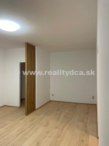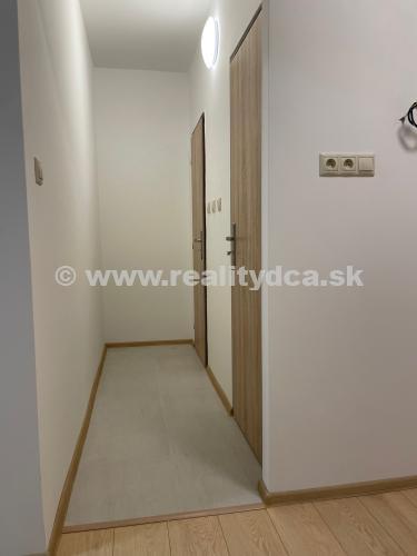 Predáme 1-izbový byt v Dubnici nad Váhom , po kompletnej rekonštrukcii, o výmere 39,23 s balkónom a pivnicou 3m2, nachádzajúci sa na sídlisku PH - účko. Byt je zrekonštruovaný ako čiastočne 2-izbový - dispozičné riešenie: vstupná chodba, veľká obývacia izba, kde je stavebne odčlenená spálňa bez dverí s otvoreným vstupom, kuchyňa s východom na balkón , samostatná kúpelňa a WC. V byte sú vymenené okná , nové interiérové a exteriérové dvere, nové stierky, nová maľovka, nové rozvody vody a elektriky, murované jadro, nová sanita, plávajúce podlahy a keramická dlažba. Energetický certifikát nebol predložený. Kompletná občianska vybavenosť, blízkosť lesa na prechádzky a oddych vo vnútrobloku - ( park s lavičkami, ihriško pre deti, dostatok zelene)